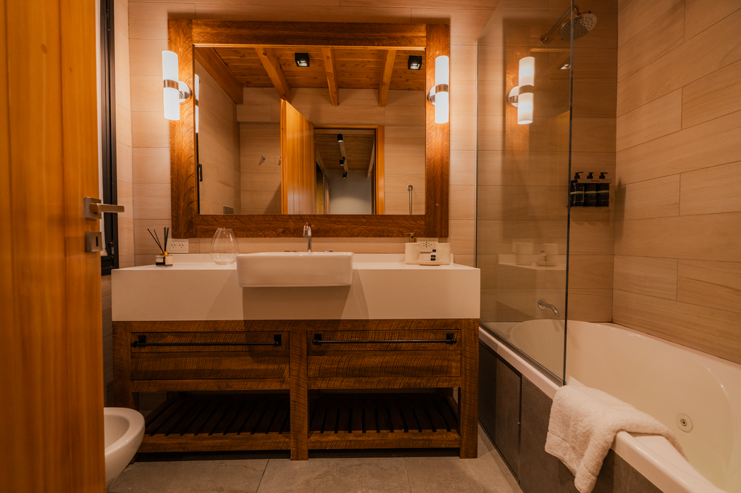 Outdoors a large deck with dining table and lounge seating invites long leisurely afternoons, while a Hiroki soaking tub offers the perfect place to unwind.